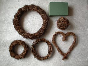 リース・アレンジの土台になるものです。 リースベースにも色々な大きさ・形があり、編んであるつるの太さも 1〜3ミリくらいの細いものから5〜7ミリくらいものもあります。