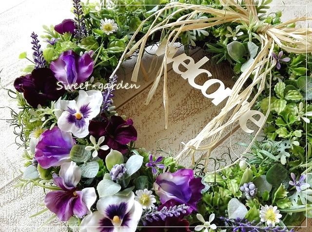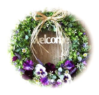 | ◆ナチュラルで繊細な色合いを長く楽しんでいただけるアーティフィシャル素材を使った、直径約30センチのリースです。 ◆きれいなままでずっと飾っていただけるギフトとして *母の日* にも♡ 何種類ものグリーンをベースに、パンジー・ラベンダー・カモミールなどの爽やかな色合いの花材でアレンジし、オフホワイトのウェルカムプレートをつけました。 みずみずしいグリーンがパープル系のパンジーとラベンダーを引き立てる、ナチュラルでボリュームのあるリースです。 リビングなどのお部屋はもちろん、玄関ドアやエントランスに飾ってお客様をお迎えしましょう! お誕生日や新築・お引越し祝いなどのギフトにも最適です! |