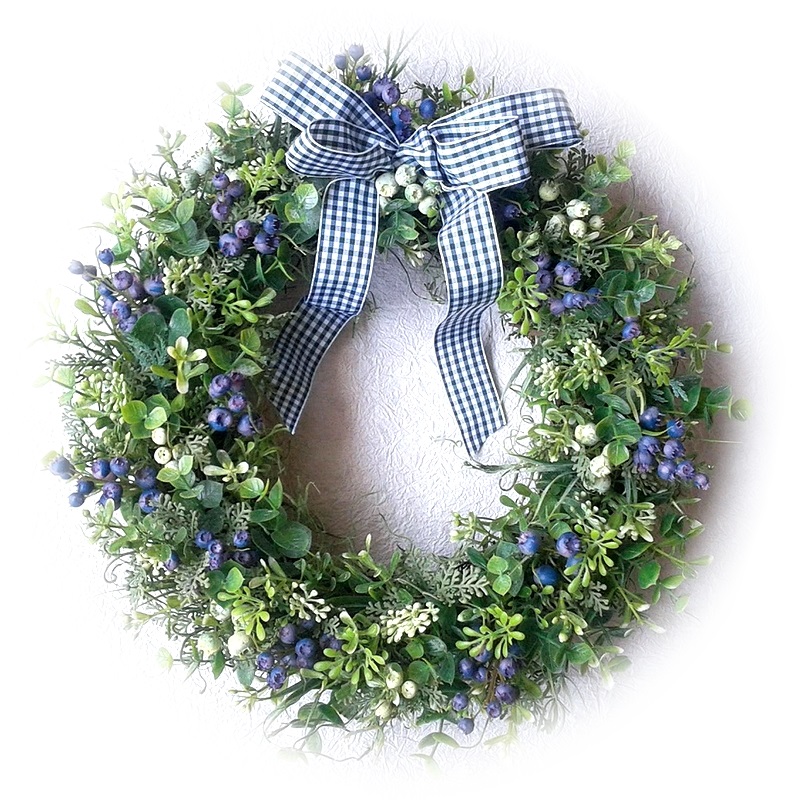ナチュラルでさわやかな色合いを長く楽しんでいただける、アーティフィシャル素材を使ったリースです。 (※飾っていただく状況・日数などによっては多少の色あせ・劣化はご承知おき下さい) 近くに寄らないとフェイクとは気づかないほど、ナチュラルでみずみずしいブルーフリルベリーのグリーンリース。 何種類ものグリーンの中にブルーのフリルベリーを散りばめ、ナチュラルに仕上げました。 お部屋はもちろん、玄関ドア・門扉などに飾って、エントランスを素敵に演出しましょう。 ≪ ドライ ・プリザーブド ・アーティフィシャル素材のちがいはこちらから ≫ |