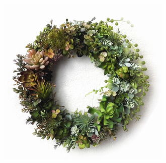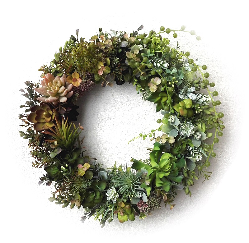 ナチュラルでさわやかな色合いを長く楽しんでいただける、アーティフィシャル素材を使ったリースです。 (※飾っていただく状況・日数などによっては多少の色あせ・劣化はご承知おき下さい) 近くに寄ってもフェイクとは気づかないほどナチュラルでみずみずしい、 人気のアーティフィシャル素材の多肉植物のリースです。 スモーキーなトーンや透明感あるグリーンなど、色味の微妙に違う多肉植物のアレンジで お部屋はもちろん、玄関ドア・門扉などに飾って、エントランスをナチュラルに演出しましょう。 ※お部屋に飾っていただいた場合、より長くみずみずしい色合いを保てます。 ≪ ドライ ・プリザーブド ・アーティフィシャル素材のちがいはこちらから ≫ |