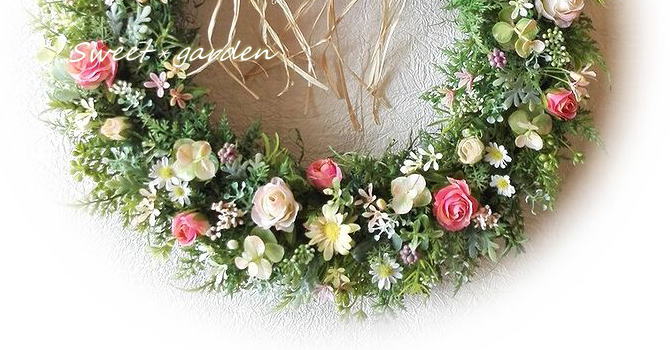 | ≪ご希望の場合はご注文の際、備考欄にご記入下さい≫ ■使用花材を若干減らし、直径約30センチの仕上がりサイズでお作りすることもできます (7,100円) ■使用花材を若干減らし、直径約25センチの仕上がりサイズでお作りすることもできます (6,100円) ■WELCOMEプレートをプラスすることもできます(アイアン:+300円 ・ ミルキーホワイト:+400円) →参考商品 |