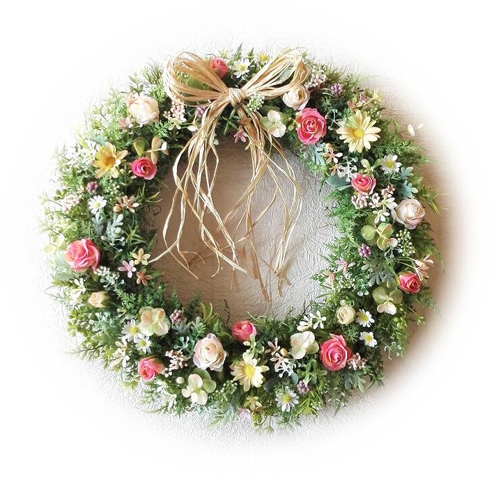 ナチュラルでさわやかな色合いを長く楽しんでいただける、アーティフィシャル素材を使ったリースです。 (※飾っていただく状況・日数などによっては多少の色あせ・劣化はご承知おき下さい) 近くに寄らないとフェイクとは気づかないほど、ナチュラルでみずみずしいリースです。 お部屋はもちろん、玄関ドア・門扉などに飾って、エントランスをナチュラルに演出しましょう。 ※お部屋に飾っていただいた場合、より長くみずみずしい色合いを保てます。 ≪ ドライ ・プリザーブド ・アーティフィシャル素材のちがいはこちらから ≫ |