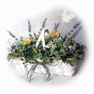 ナチュラルでさわやかな色合いを長く楽しんでいただける、アーティフィシャル素材を使った雑貨です。 (※飾っていただく状況・日数などによっては多少の色あせ・劣化はご承知おき下さい) 瑞々しく ナチュラルなグリーンをメインにラベンダー・デージー・可憐な小花を、 寄せ植え風に白いバスケットにアレンジしました。 さわやかなグリーンとすがすがしい可憐な花のアレンジで、気分もリフレッシュ! 玄関まわりやリビング・寝室など、あなたの心地よい場所に飾ってお楽しみ下さい。 ギフトなどにも喜んでいただけます。 ≪ ドライ ・プリザーブド ・アーティフィシャル素材のちがいはこちらから ≫ |