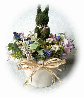 ナチュラルでさわやかな色合いを長く楽しんでいただける、アーティフィシャル素材を使った雑貨です。 (※飾っていただく状況・日数などによっては多少の色あせ・劣化はご承知おき下さい) モスラビットの周りを、ナチュラルグリーンと淡い色合いの小花でアレンジした素焼きポットです。 アーティフィシャル素材を使うことによって、やさしい色合いをそのままに長く楽しんでいただけます。 玄関やリビングはもちろん、ベッドルームなどに飾って安らぎの空間に・・・。 ≪ ドライ ・プリザーブド ・アーティフィシャル素材のちがいはこちらから ≫ |