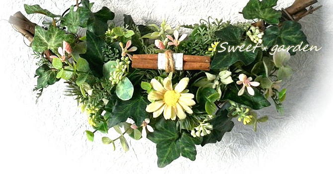 ナチュラルでさわやかな色合いを長く楽しんでいただける、アーティフィシャル素材を使ったリースです。 (※飾っていただく状況・日数などによっては多少の色あせ・劣化はご承知おき下さい) 近くに寄らないとフェイクとは気づかないほど、ナチュラルなグリーンがみずみずしいリースです。 シナモンと、やさしいイエローデージーをかわいくアレンジしました。 お部屋はもちろん、玄関ドア・門扉などに飾って、エントランスをナチュラルに演出しましょう。 ≪ ドライ ・プリザーブド ・アーティフィシャル素材のちがいはこちらから ≫ |