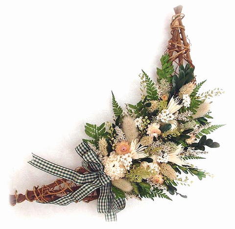 ドライフラワーを使った、ハート・ハーフムーン・オーバル形のリース
