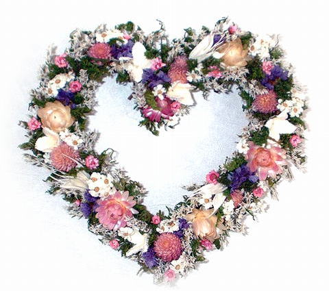 ドライフラワーを使った、ハート・ハーフムーン・オーバル形のリース