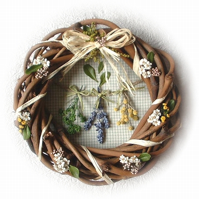 中に3種の花材をアレンジして、ちょっとかわいいリースができあがりました。