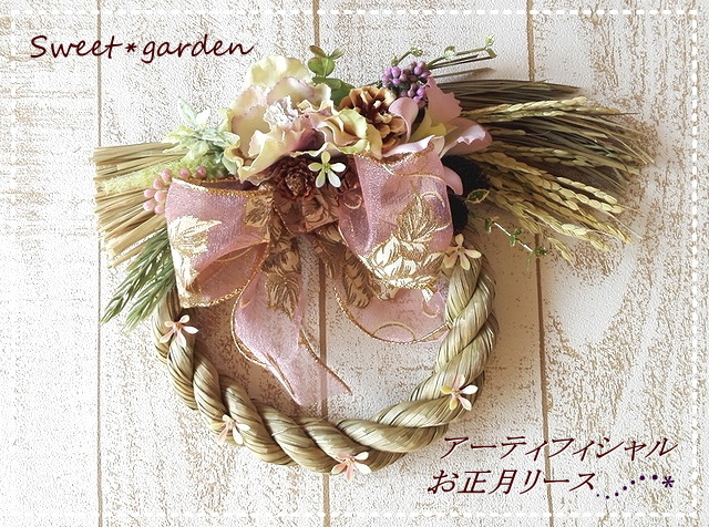 | ◆やさしく上品な雰囲気の洋風しめなわを飾って、新しい年を迎えませんか? みなさまにとって、新しい年が素敵な一年になりますように・・・☆ |