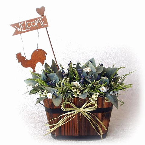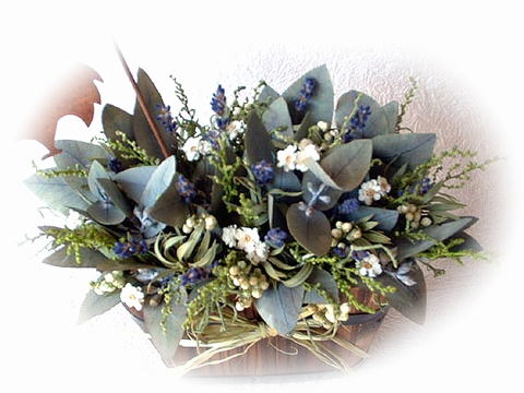 ユーカリとブルーサルビアのウッドボックス