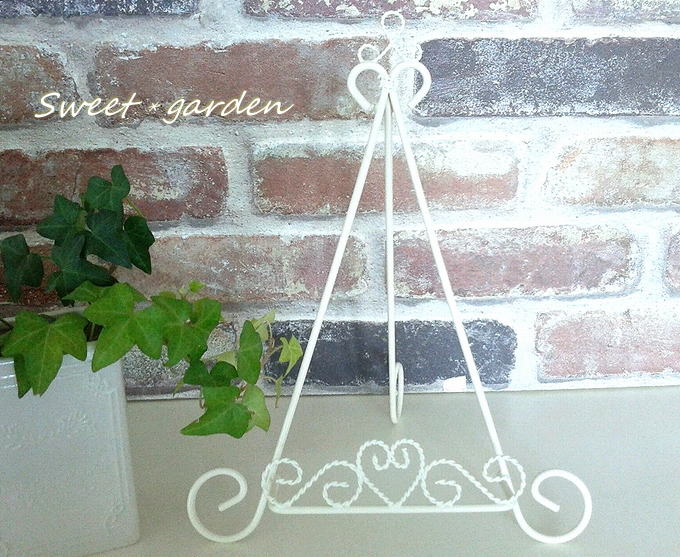 クルンとしたカールがかわいい、白い鉄製のリーススタンドです。